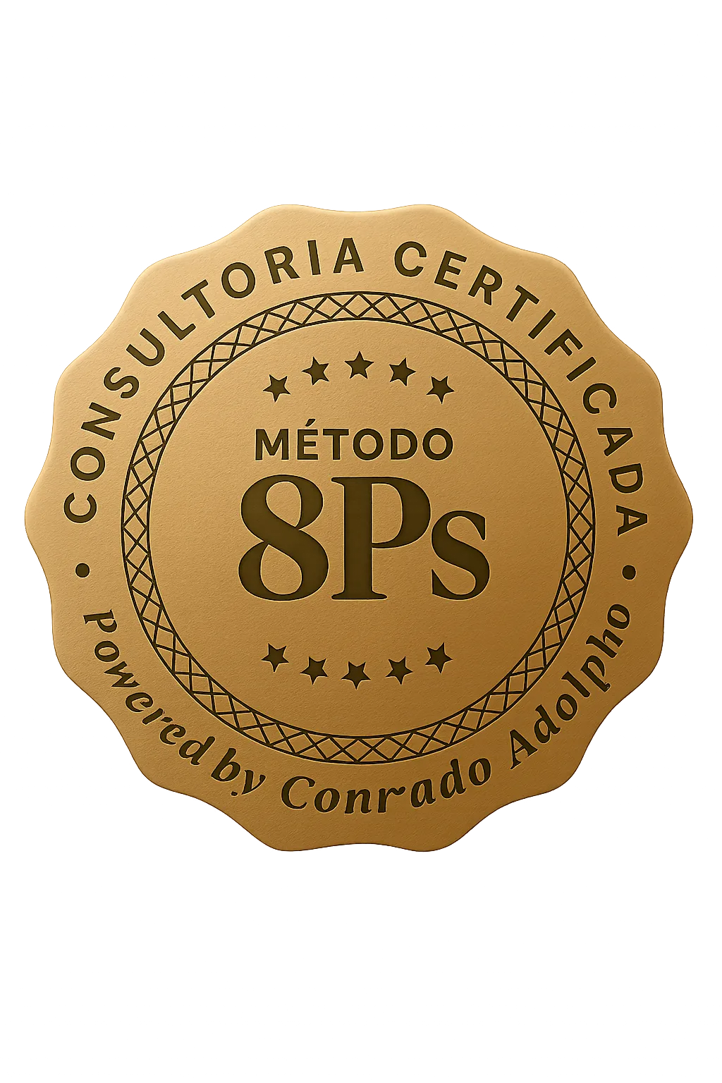 Significa que o consultor passou por um processo intenso de formação e validação dentro da Certificação 8Ps de Conrado Adolpho, uma das metodologias de marketing e vendas mais reconhecidas do Brasil.